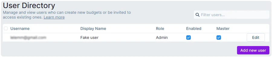 • The Basic role: Users with the Basic role can create new budgets and collaborate on budgets made by others. This role is ideal for users who primarily need to manage and participate in shared budget activities.